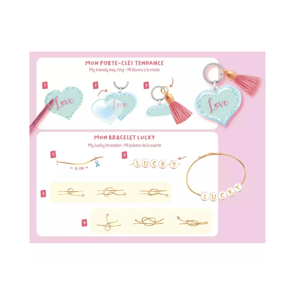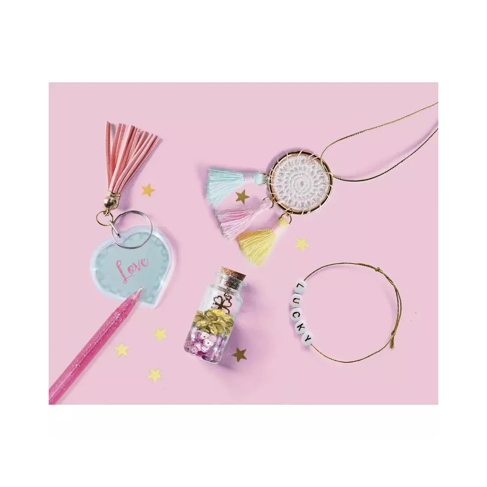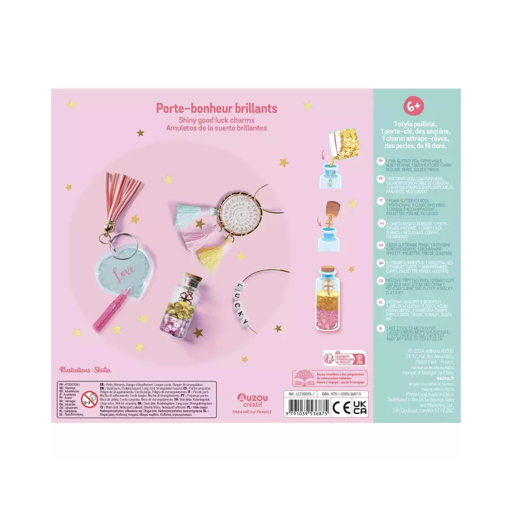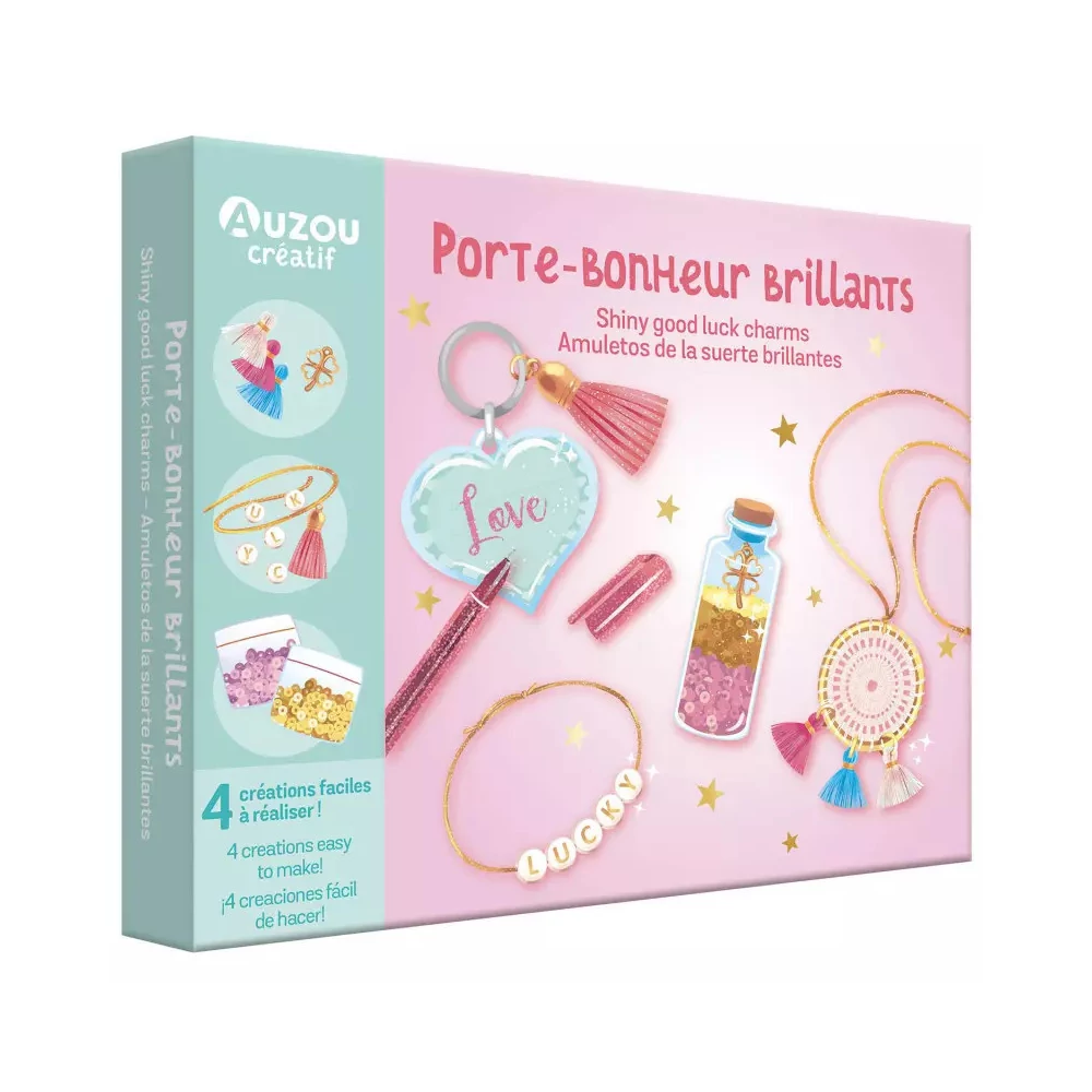Ebben a dobozban mindent megtalálsz, amire szükséged van a 4 csillogó színű szerencsehozó bűbáj elkészítéséhez.