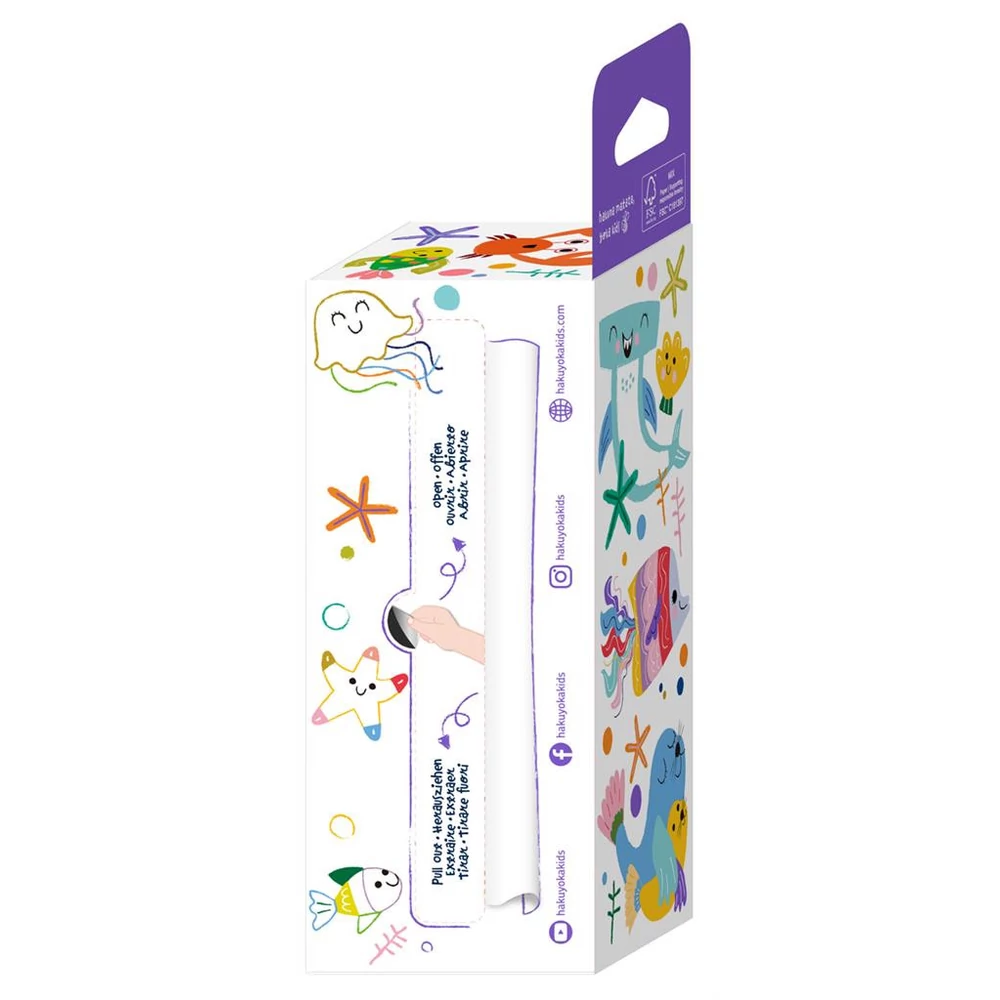 2 méter hosszú kihúzható színező tekercs 4 db színes zsírkrétával és 20 db újrapozícionálható matricával. Minden Haku Yoka zsírkréta 10% méhviasz felhasználásával készül és ECO minősítéssel rendelkezik. Ajánlott életkor: 3+