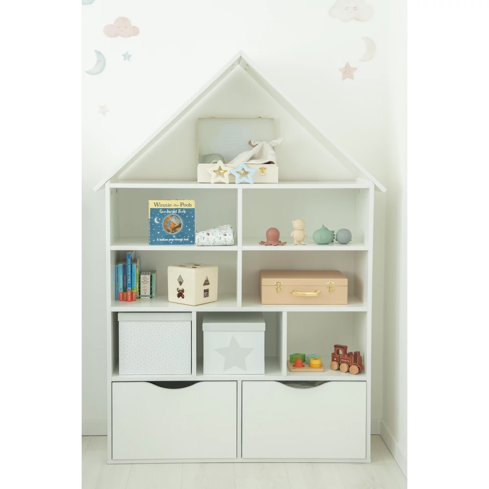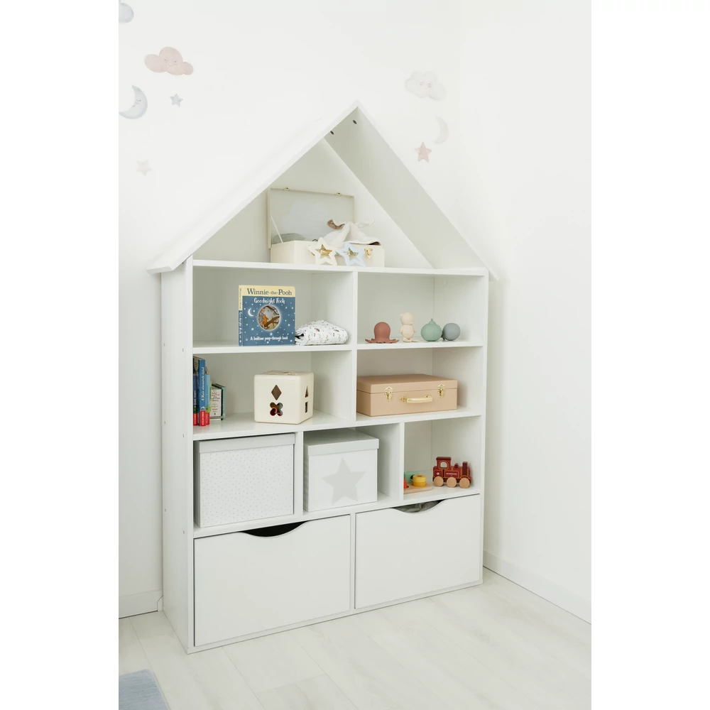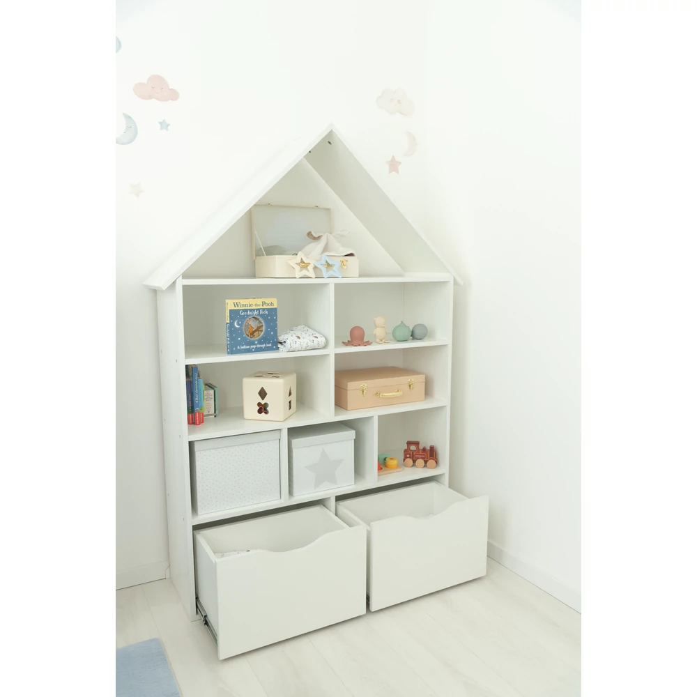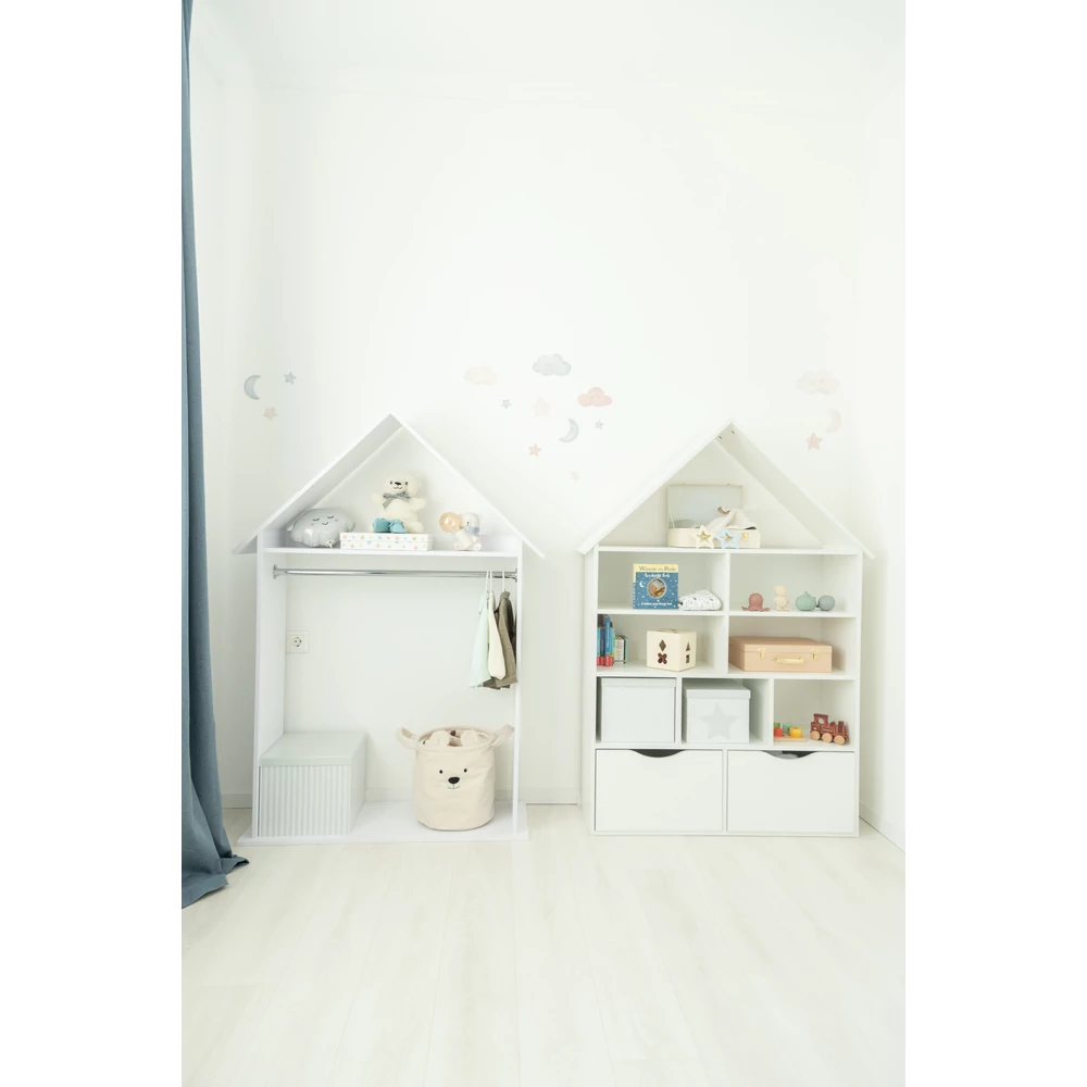 Ez a házikó polc dekoratív eleme lesz egy stílusos gyerek szobának! A gyermeket rendrakásra ösztönözni, már kis kortól érdemes, ezzel a kedves kis házikó polccal könnyebben megy majd az elpakolás a gyerekszobában. Fehér színében az elegancia tükröződik.Gyermeked imádni fogja! Formavilága miatt, játékos tanulásra alkalmas!